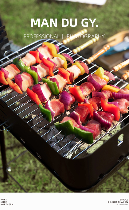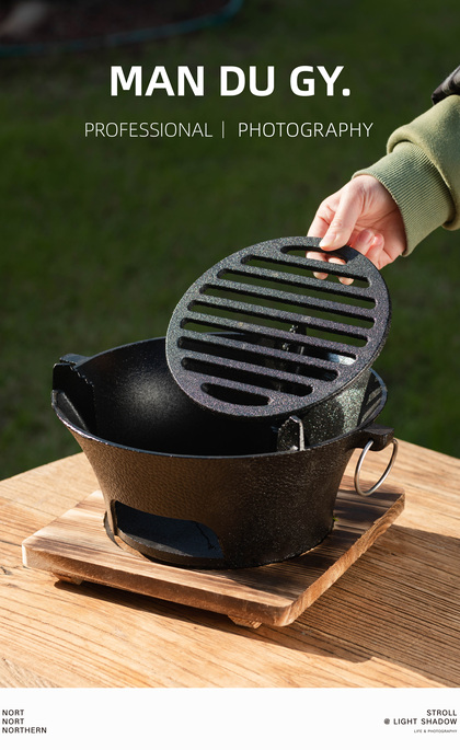 露营烧烤炉 烤盘户外 炉具锅具 烤肉盘烧烤架|产品摄影