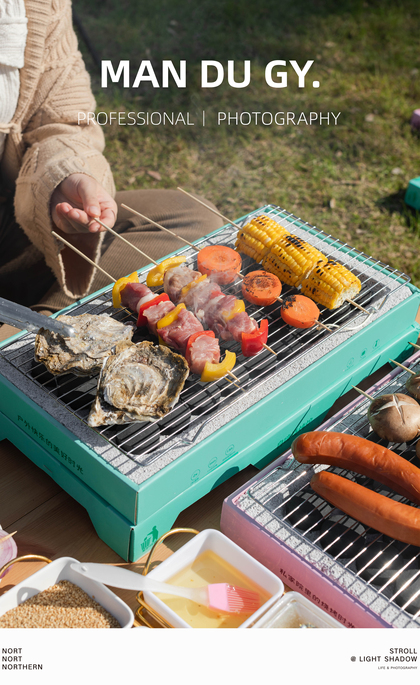 电商摄影 淘宝摄影|防风手提式金属烧烤炉便携式烧烤炉