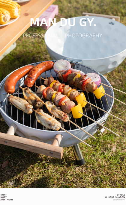 高颜值便携户外炉具 烧烤炉烧烤架炭火柴火炉|产品摄影