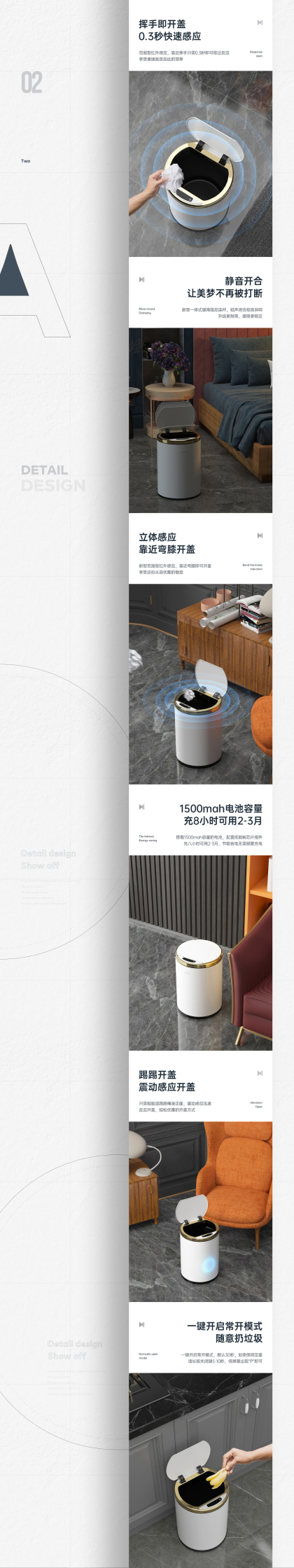 电商设计|GAOK 智能感应垃圾桶|详情页设计