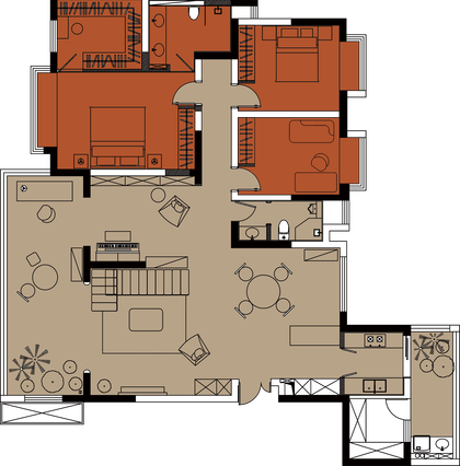 室内設計-平面方案深化-彩平