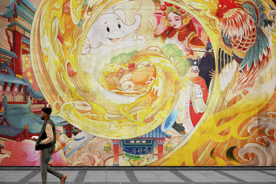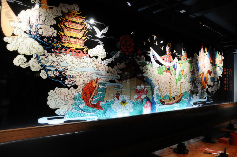 太原饭店墙绘文化墙太原彩绘 彩绘太原最好的手绘公司~