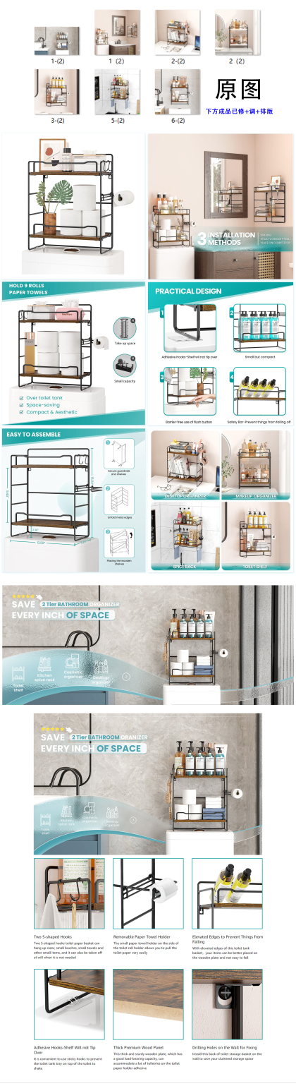 亚马逊两层马桶架主图及A+页面海报排版