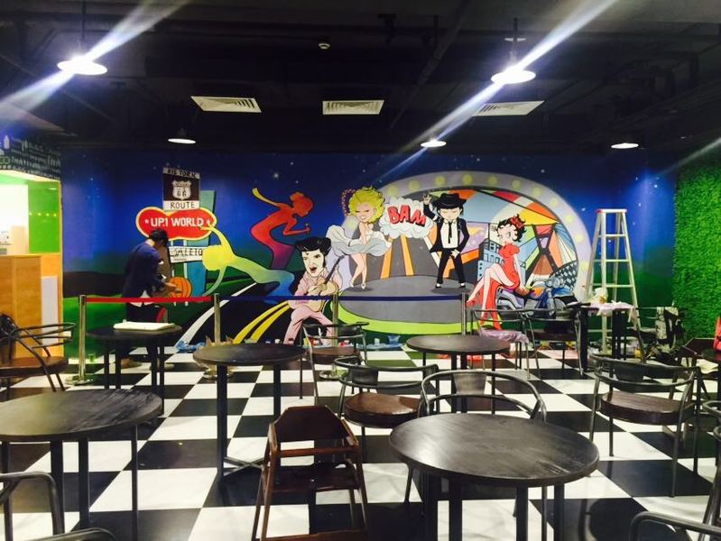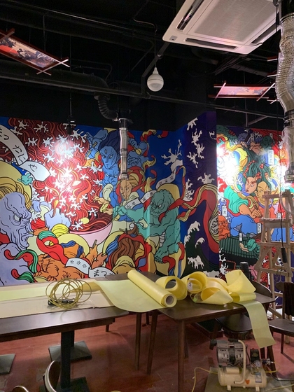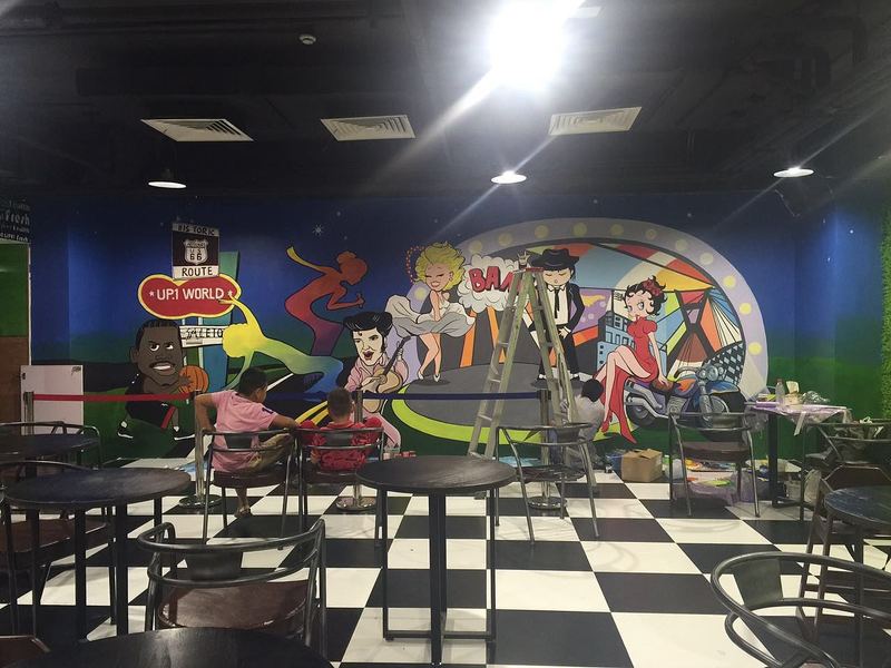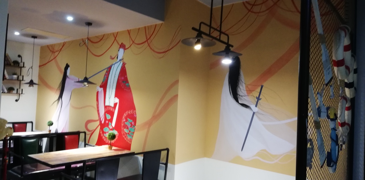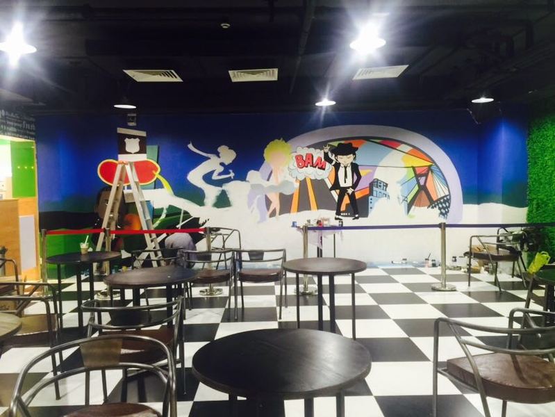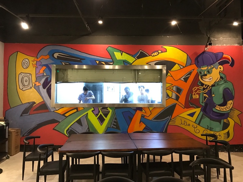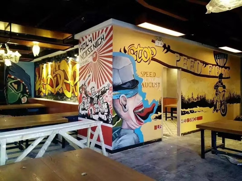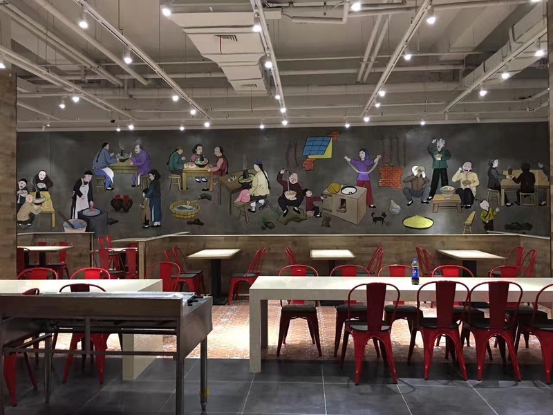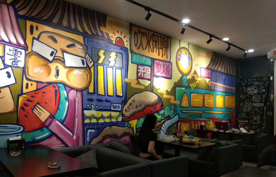 餐饮店墙绘手绘墙彩绘3D画涂鸦