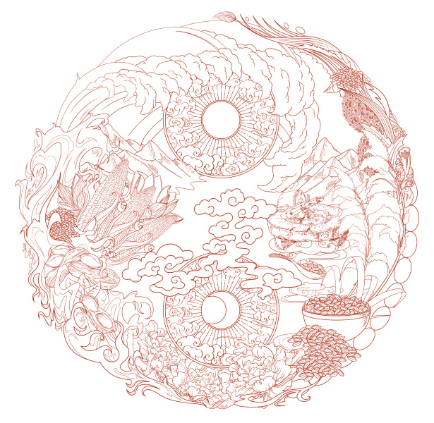 普洱包装圆面插画