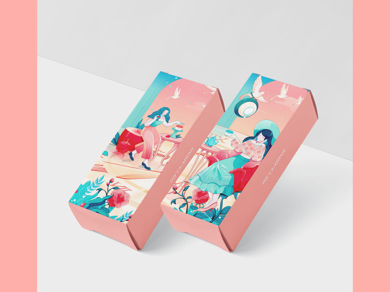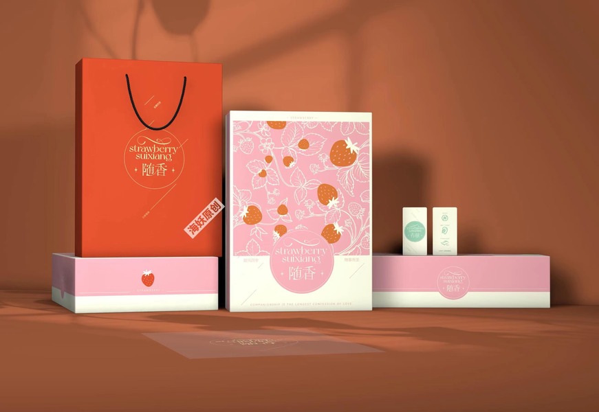 {原创}草莓水果礼盒扁平法式风格包装设计