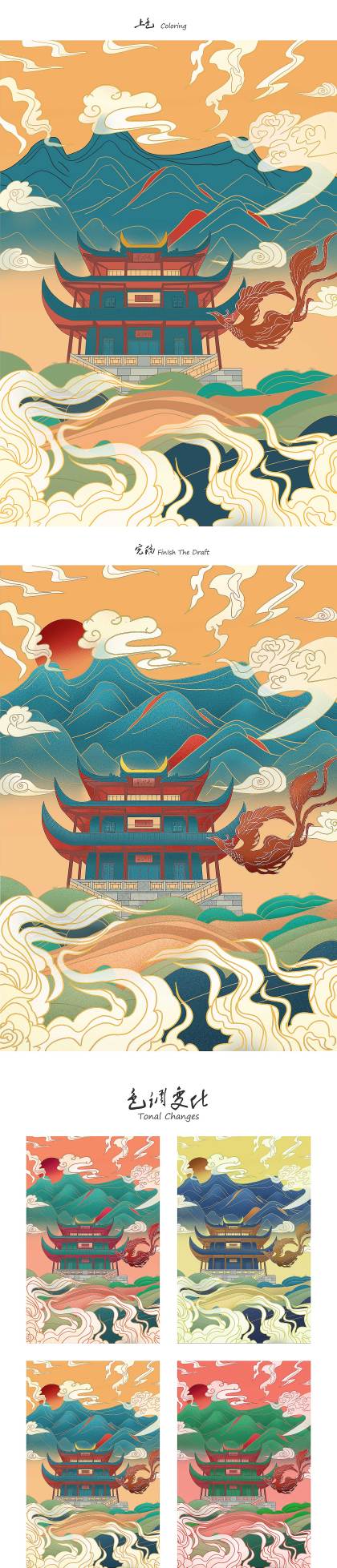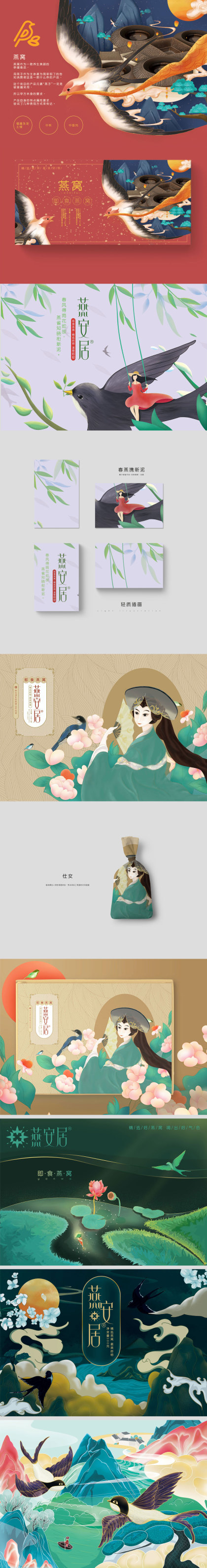 食品糕点零食点心礼盒伴手礼奶茶杯国风包装插画设计