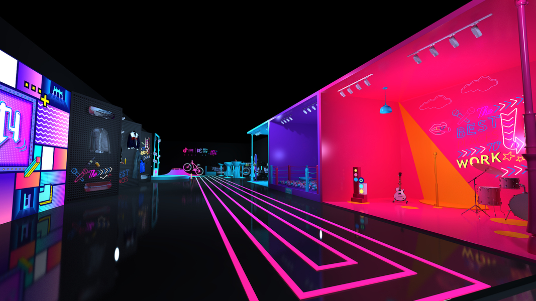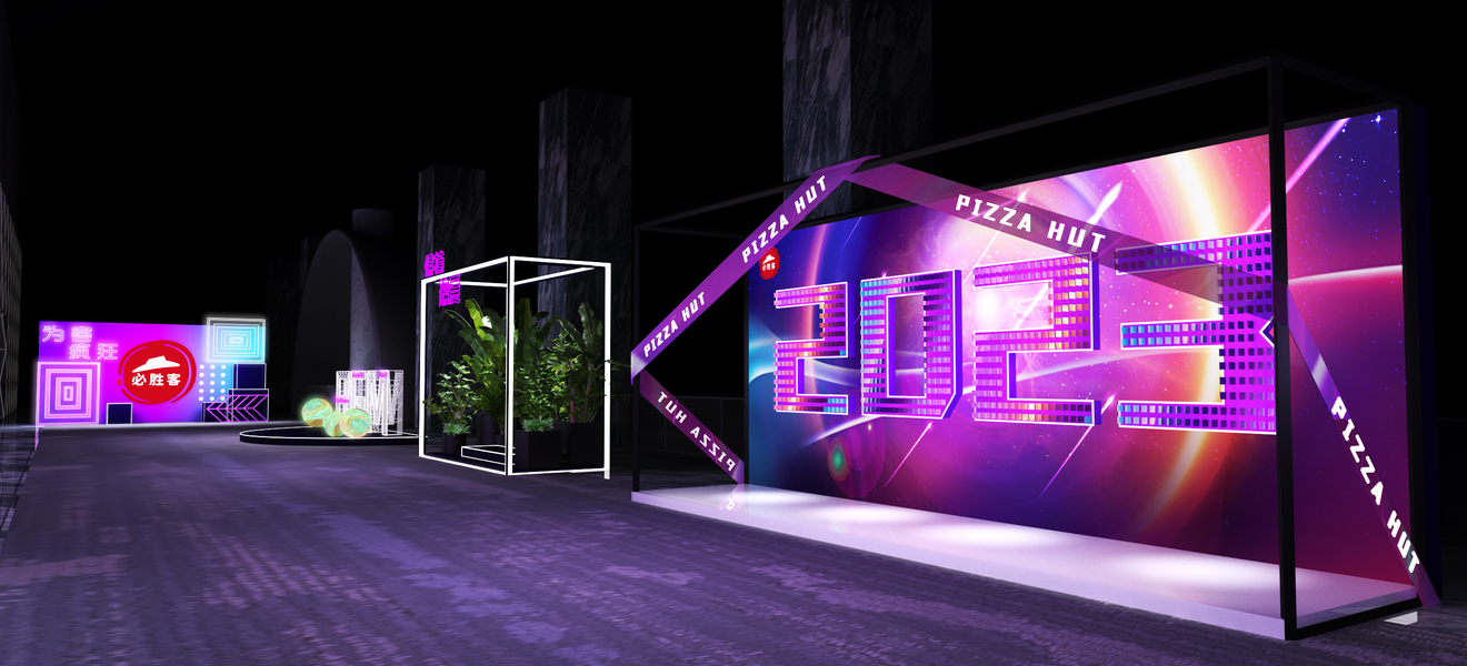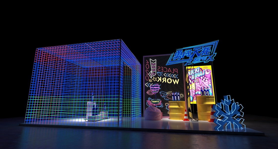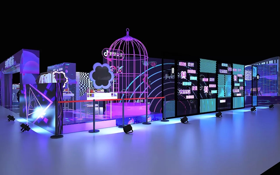 集市路演快闪店中庭美陈网红直播间3d效果图设计制作