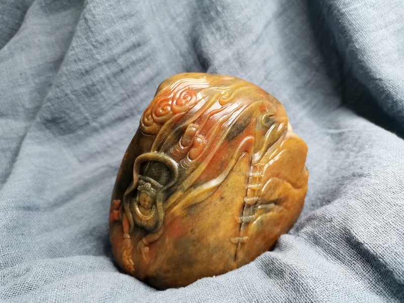 新疆金丝玉花彩西域玉雕大师敦煌风飞天摆件许像元作品