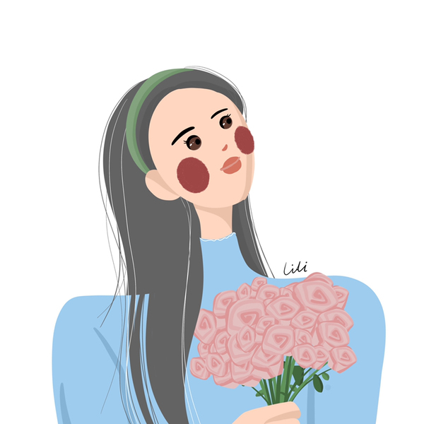原创插画头像|捧花女生💐