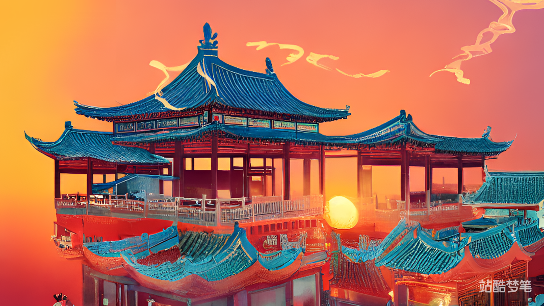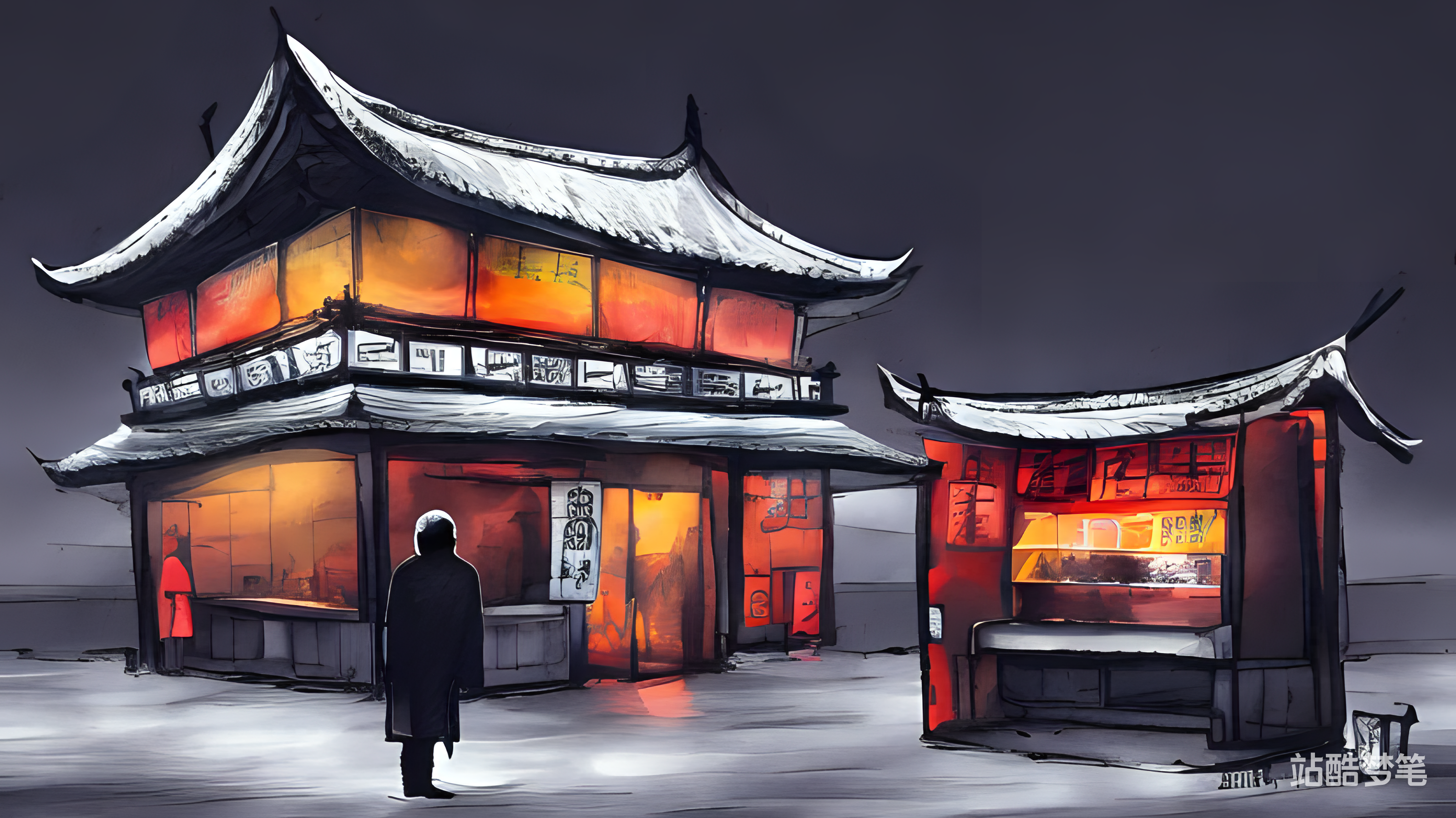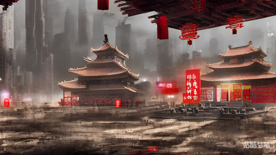#站酷梦笔#唐朝寺庙概念场景,赛博朋克,赛博朋克