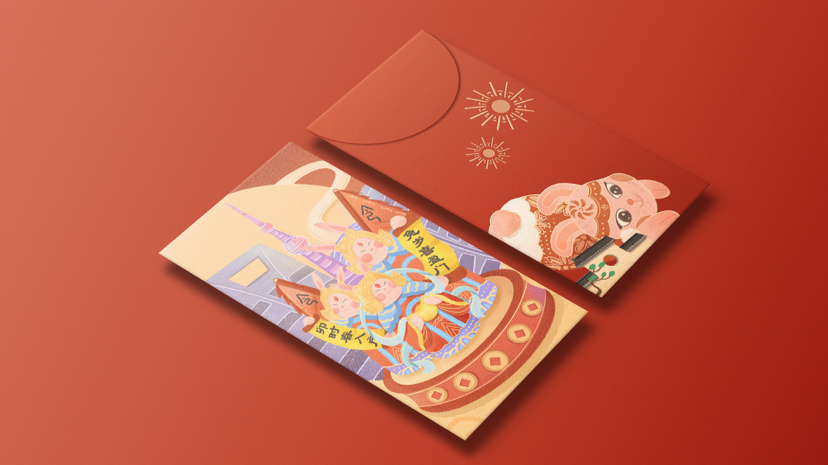 祝大家新年暴富金币闪闪&插画红包新艺术主义