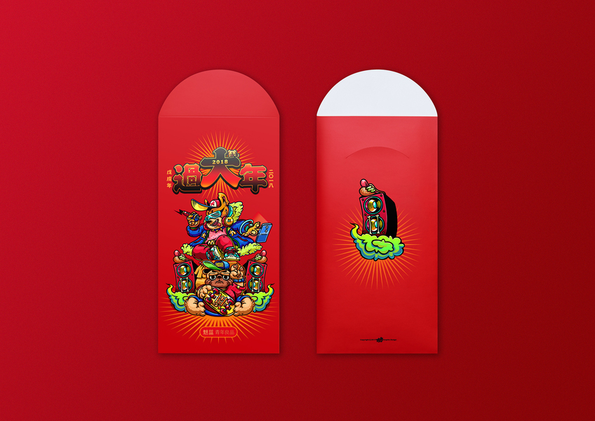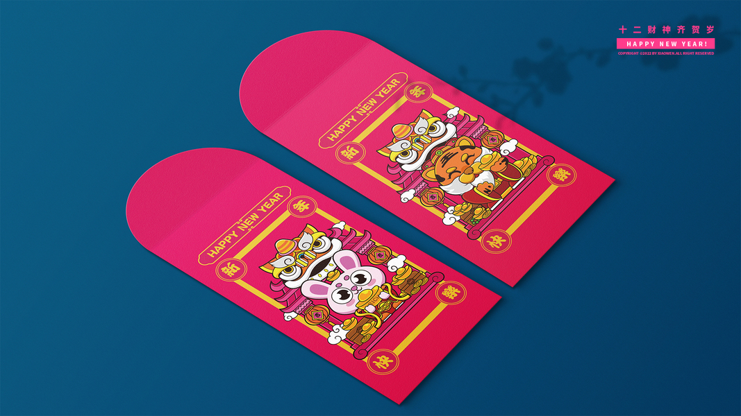 妙喵旺犬/猫狗恭喜发财团圆插画/红包T恤设计