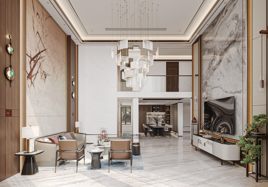 美迪大宅设计院 | 长沙别墅-昭山印象-新中式