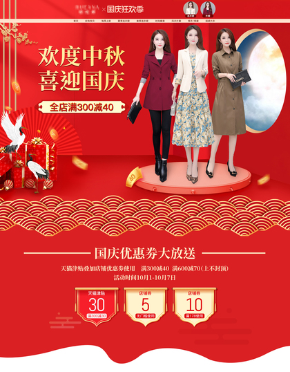 就是个美工-中老年女装 国庆海报 中秋节海报