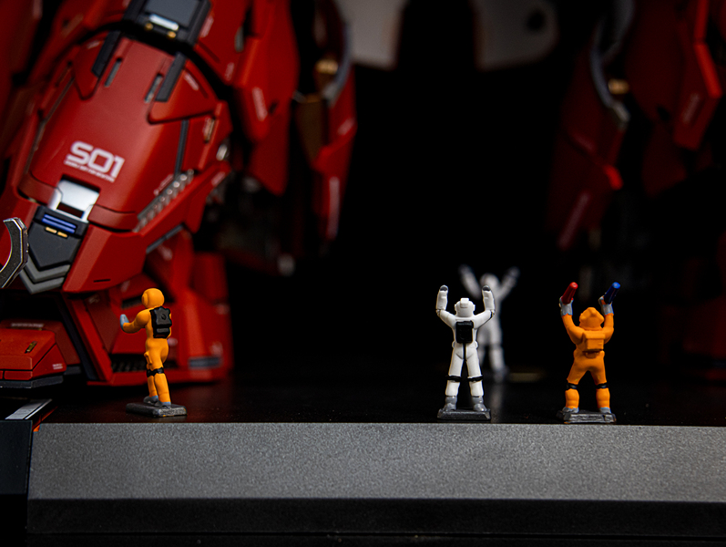 万代MG沙扎比+育胶GK套件 格纳库小人仔场景制作
