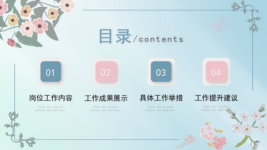 淡蓝色清新花卉教育教学商务总结通用PPT模板
