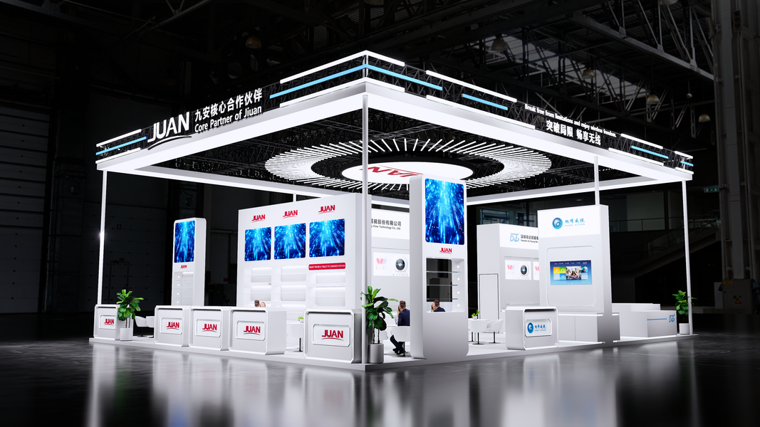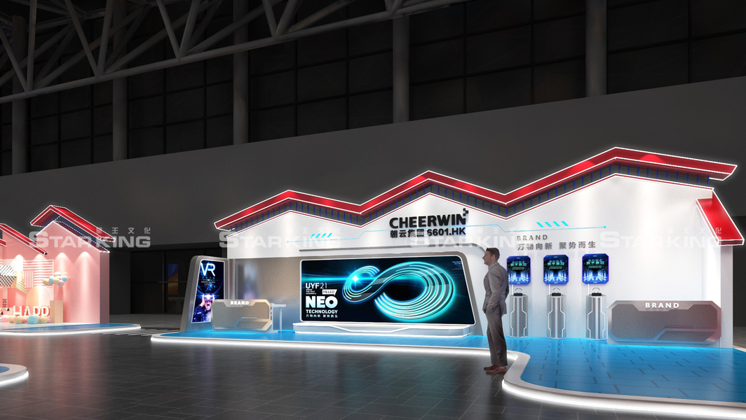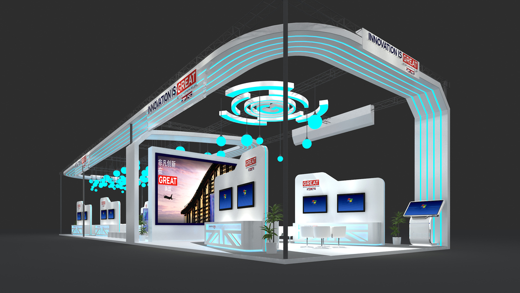 企业科技展台设计|简洁开放式无主结构展台