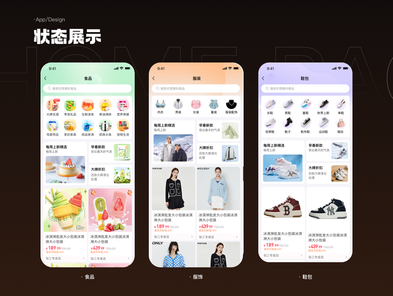 创意折扣品牌电商服饰鞋帽商城APP手机H5界面UI设计