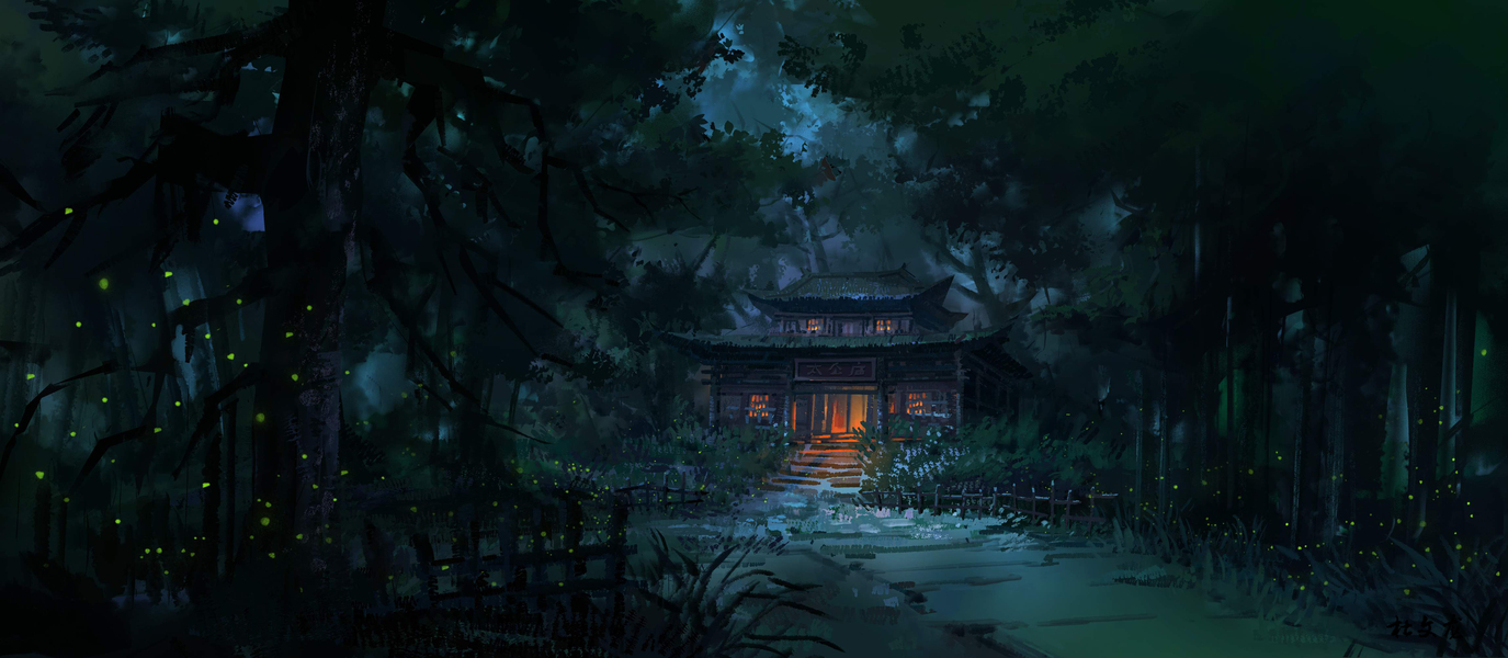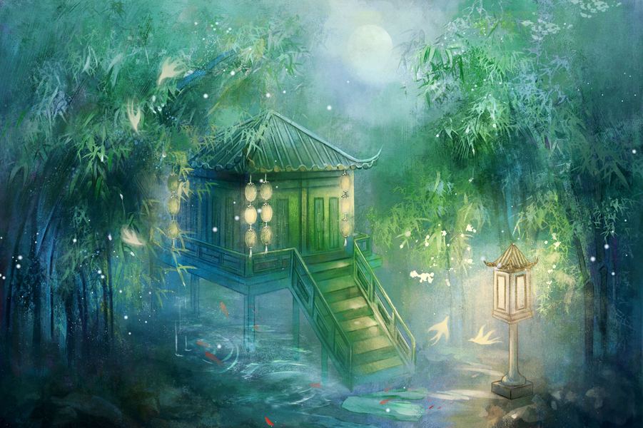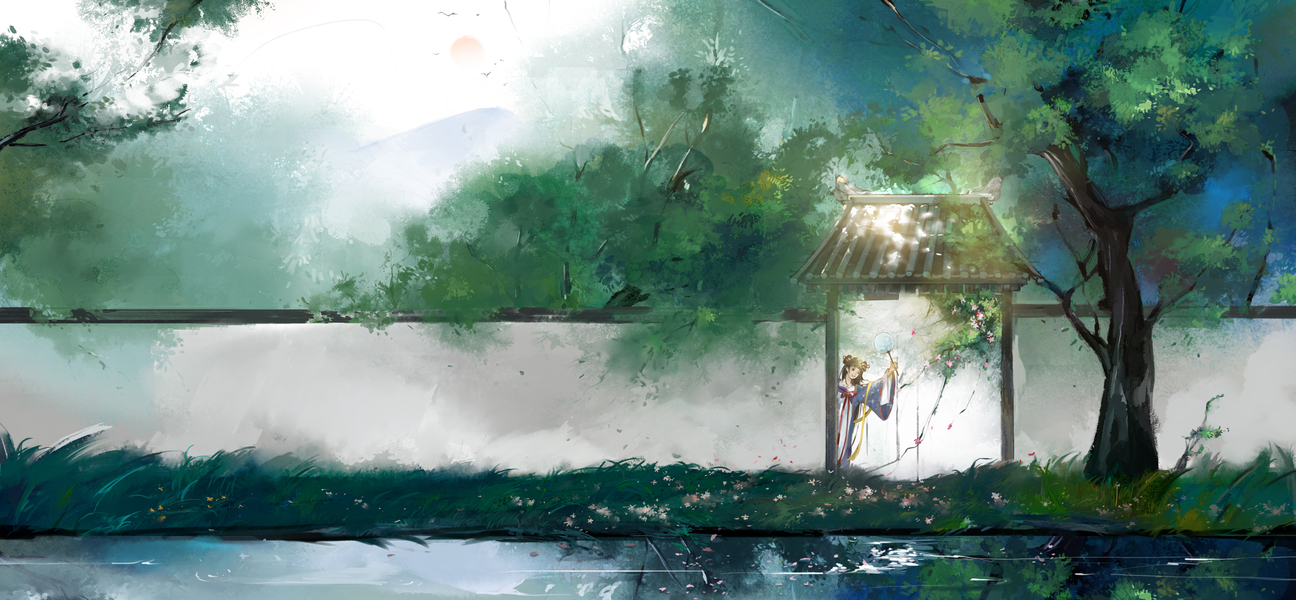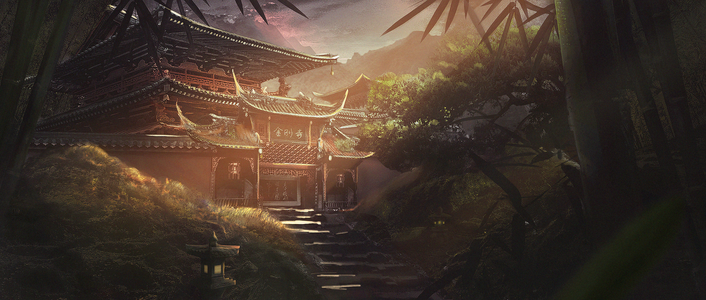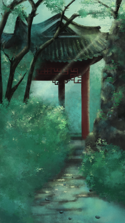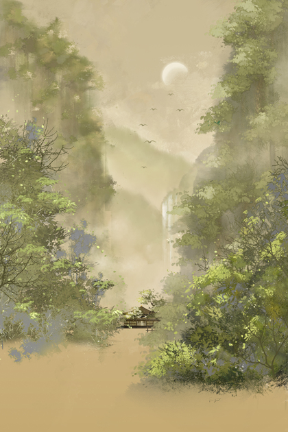 烟络横林,山沈远照,迤逦黄昏钟鼓