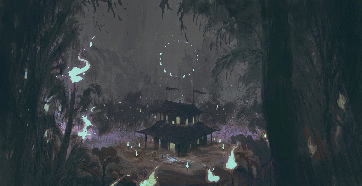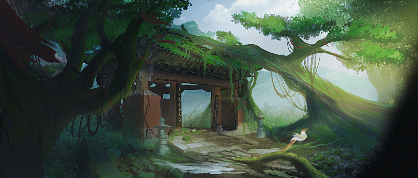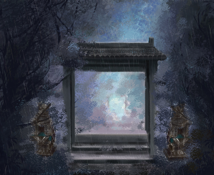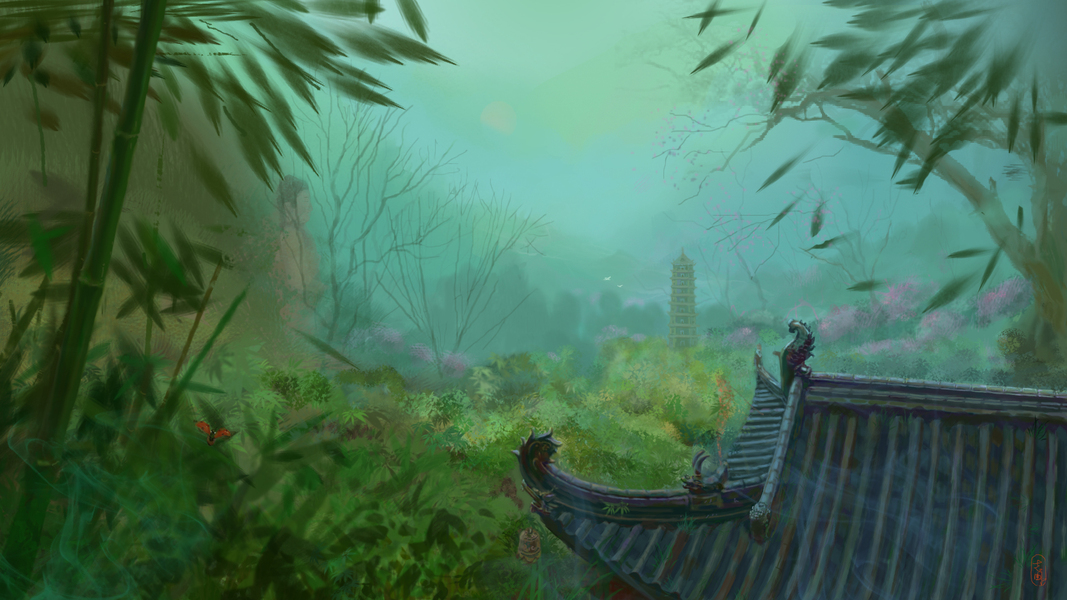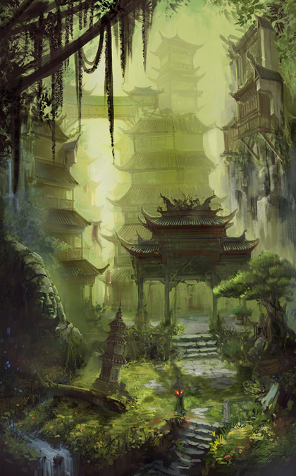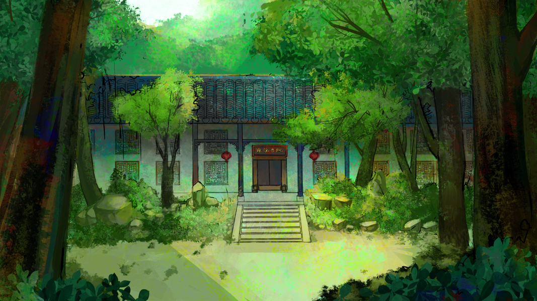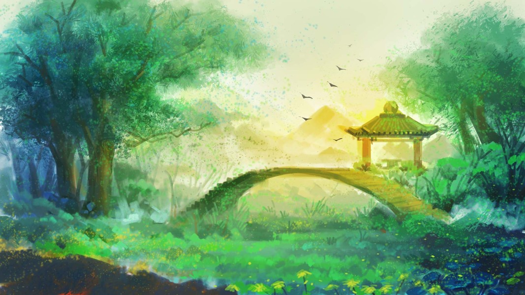 烟络横林,山沈远照,迤逦黄昏钟鼓