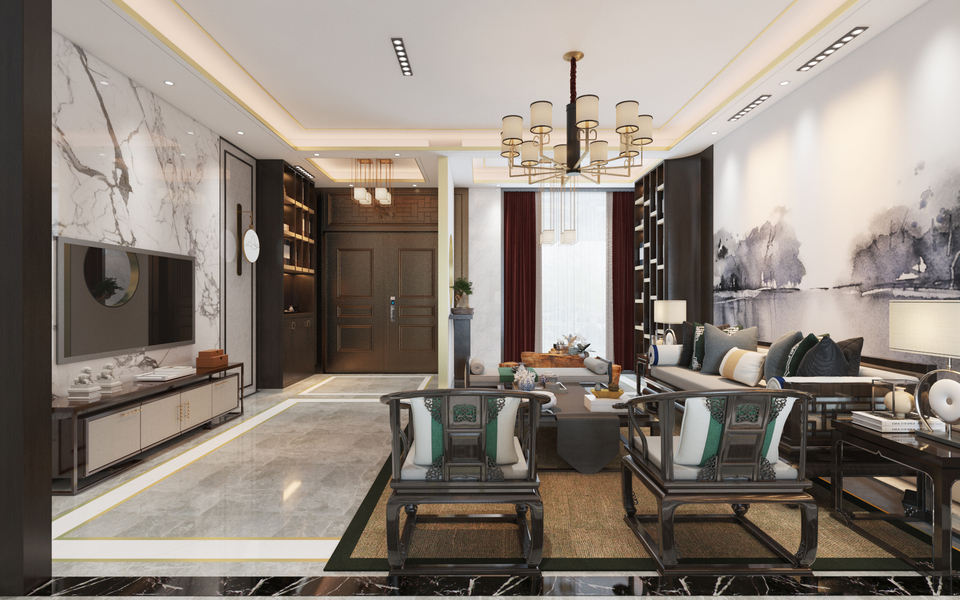 济南万泰装饰绿地国际城179平中式风格装修案例