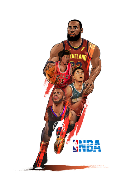 NBA球星时装插画美漫写实 湖人詹姆斯快船哈登勇士库里