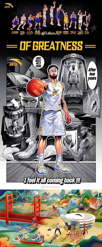 安踏体育 NBA勇士总冠军莱汤普森季后赛 插画集美漫