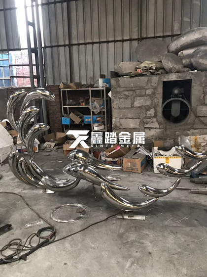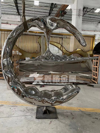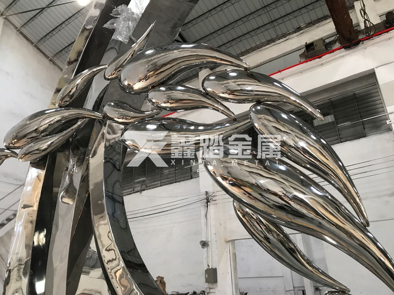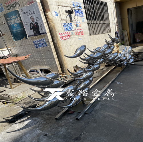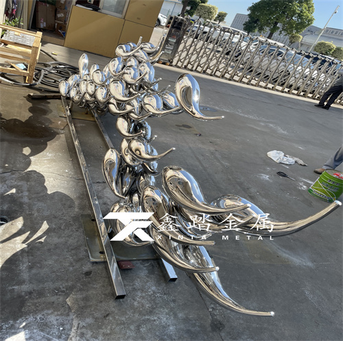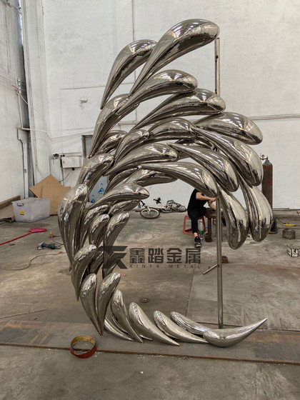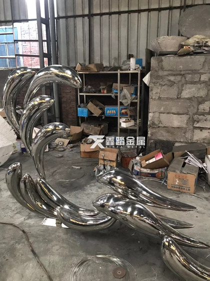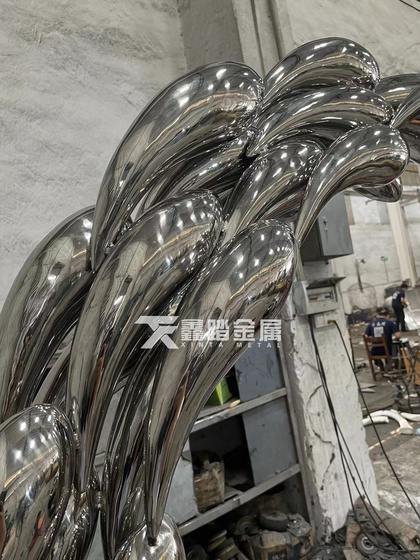 镜面不锈钢浪花雕塑、波澜起伏的抽象浪花充满着朝气图