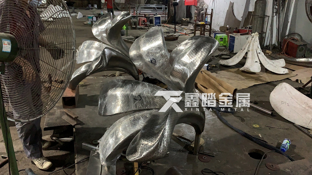水景仿真不锈钢花朵雕塑手工锻造双层不锈钢鸡蛋花摆件