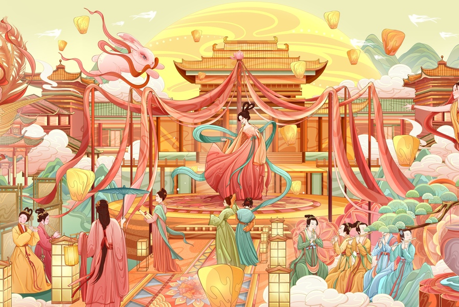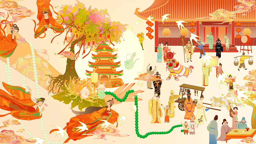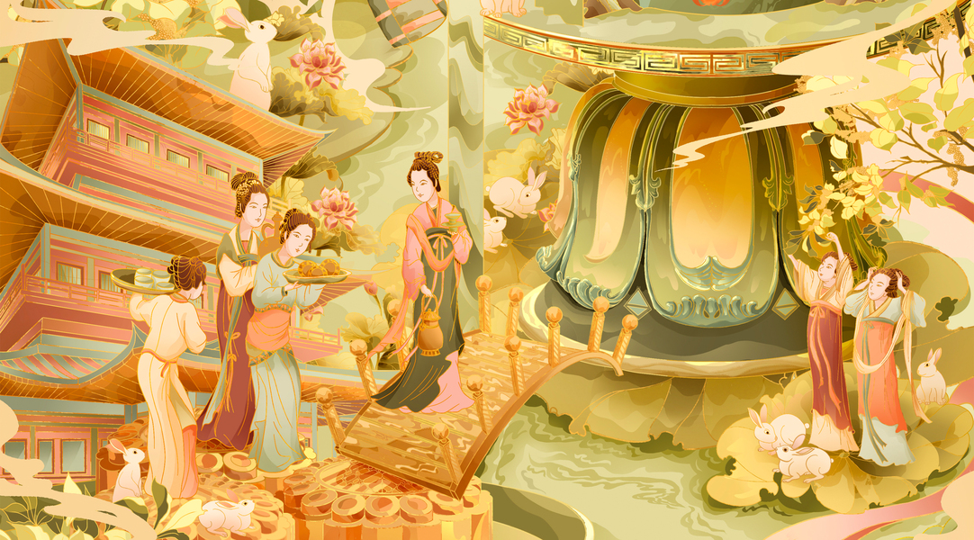【仕女x中秋】国朝节日插画——【折桂中秋图】