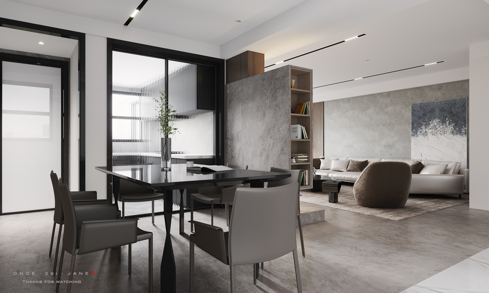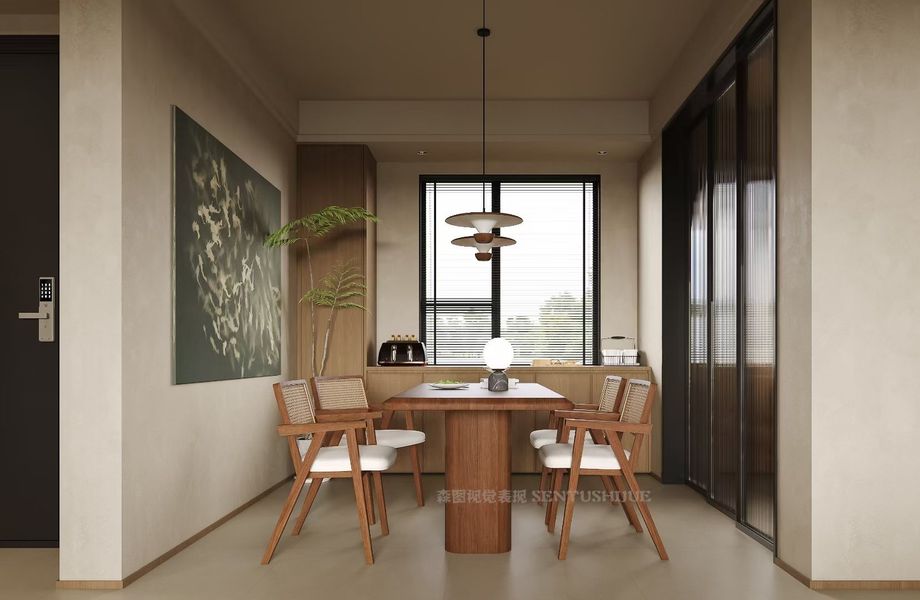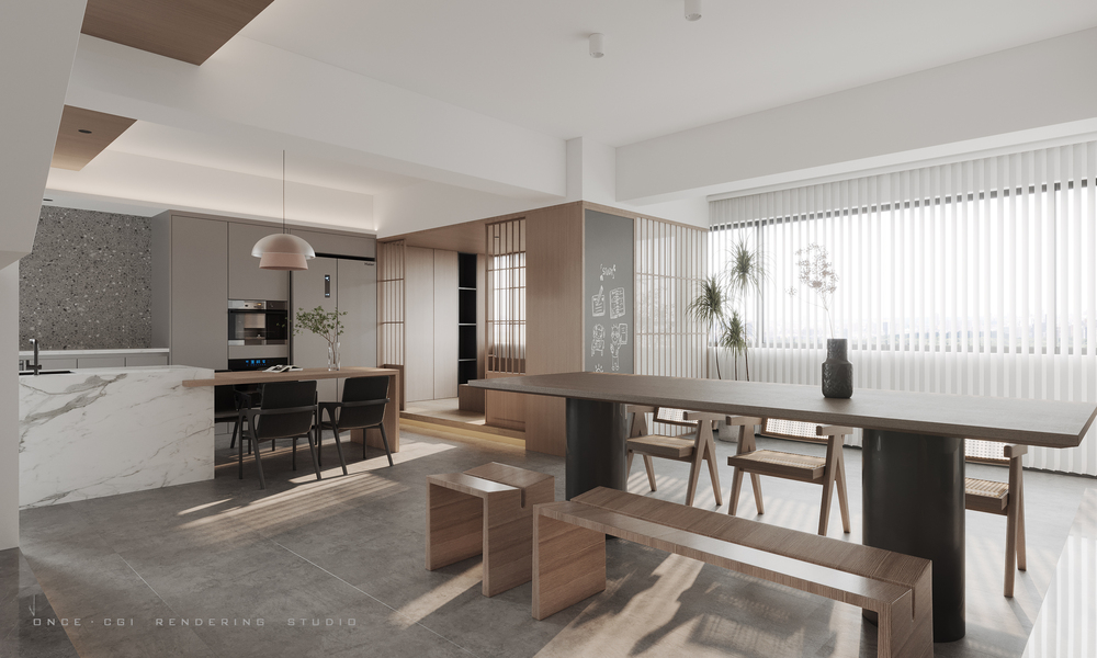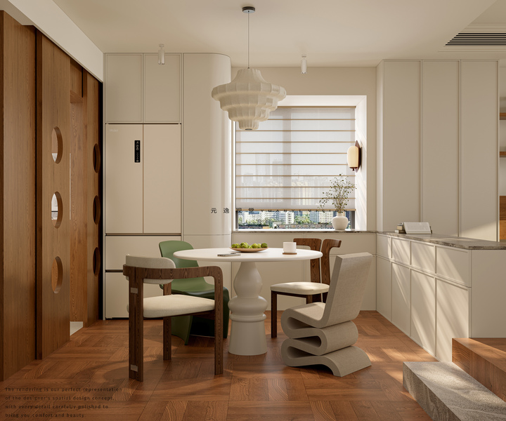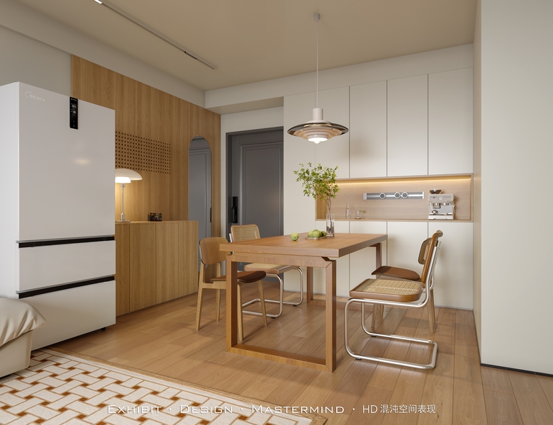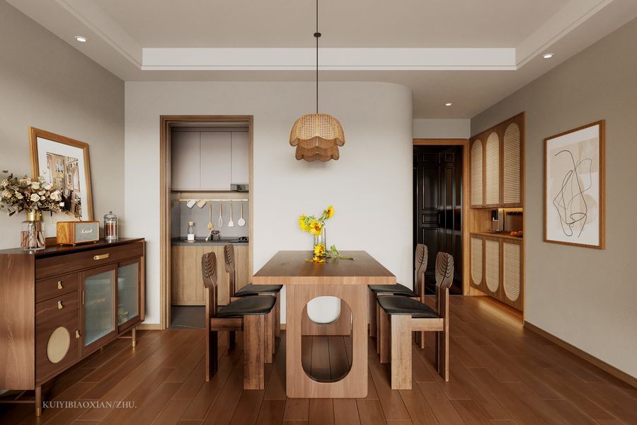 现代 极简原木风 平层客餐厅 X 混沌空间表现