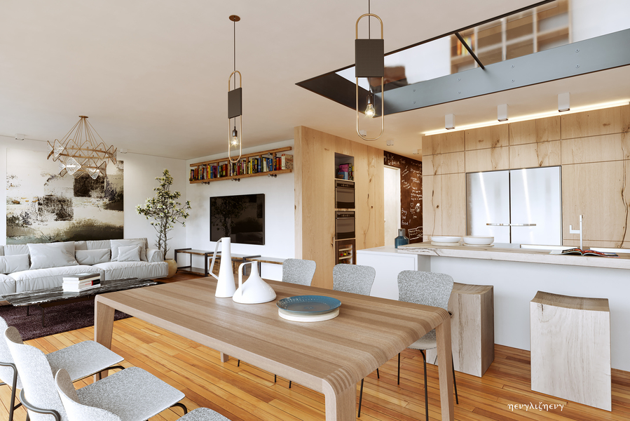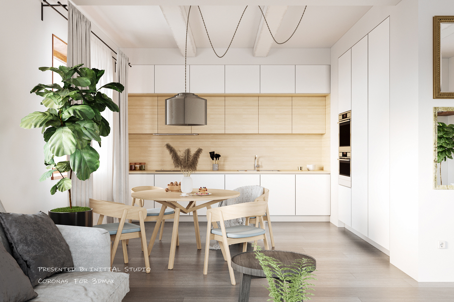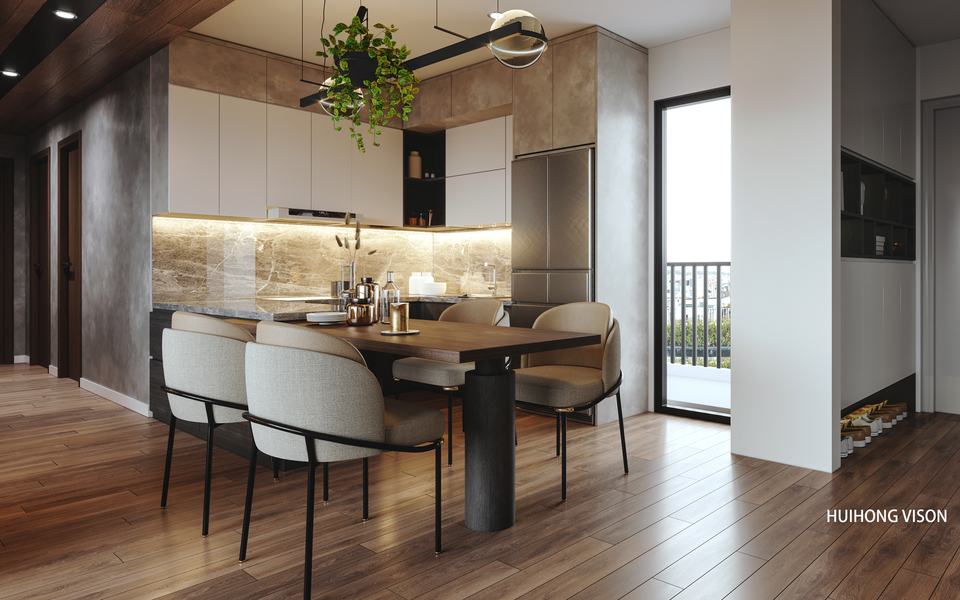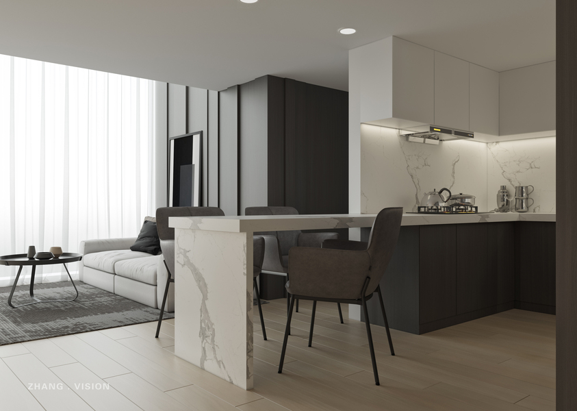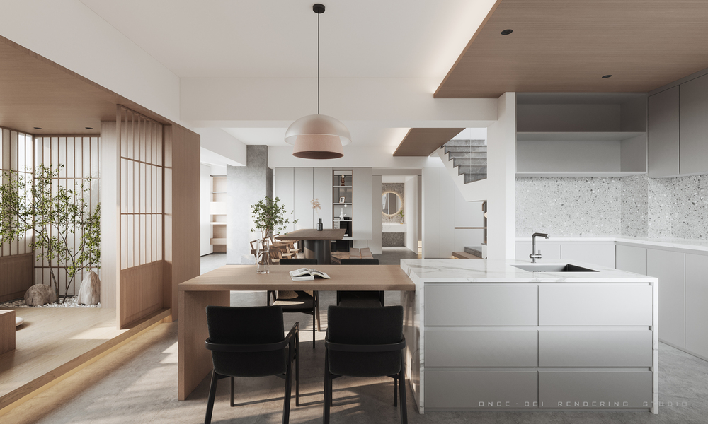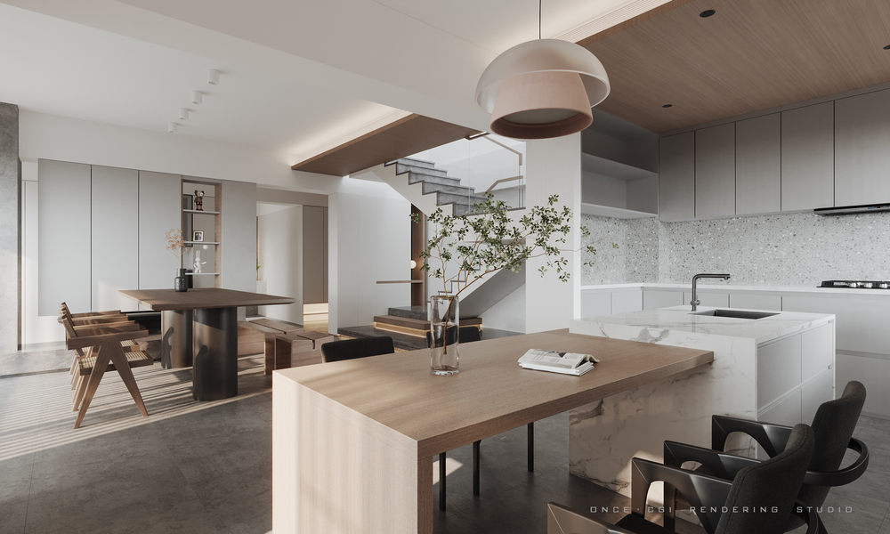 现代 极简原木风 平层客餐厅 X 混沌空间表现