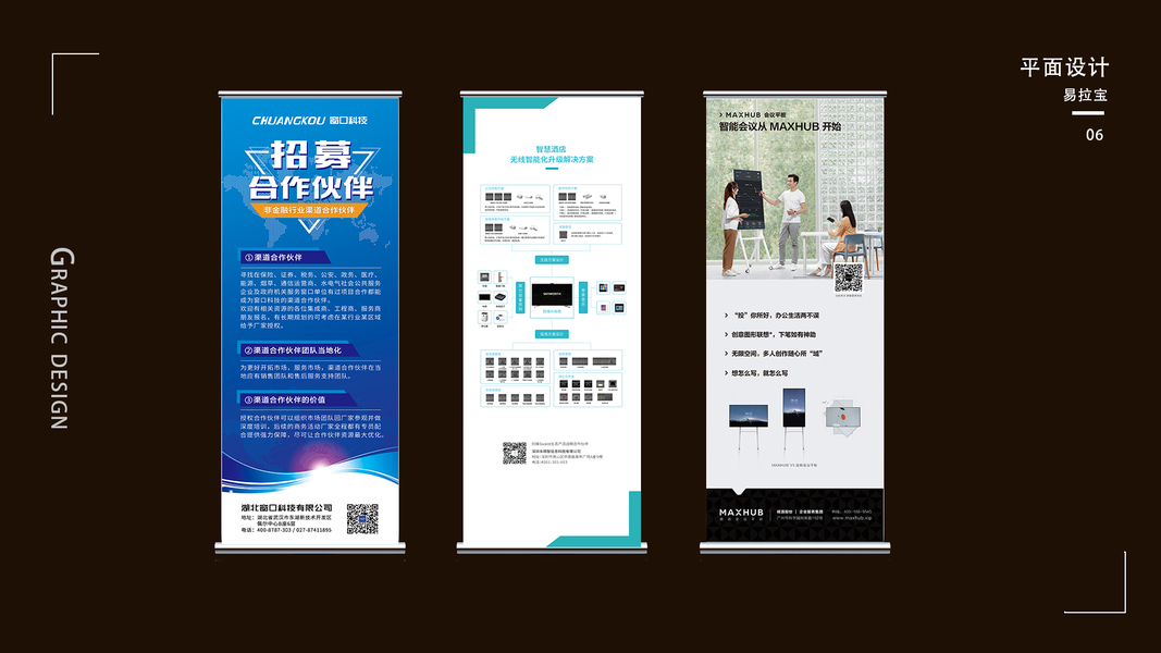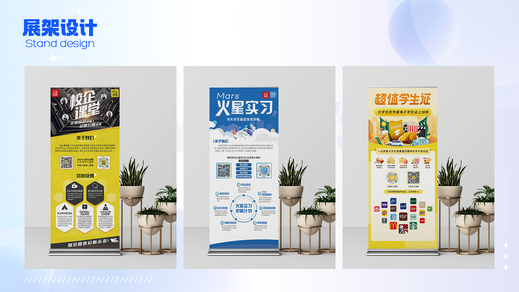 宣传画册、三折页、卡券、易拉宝等平面物料的设计