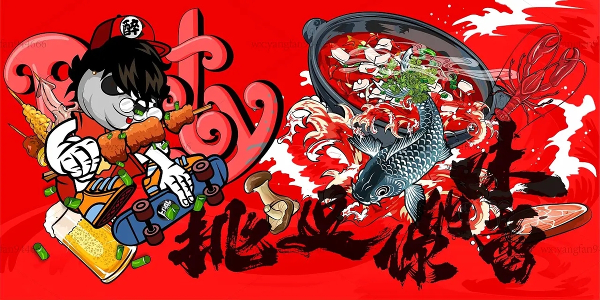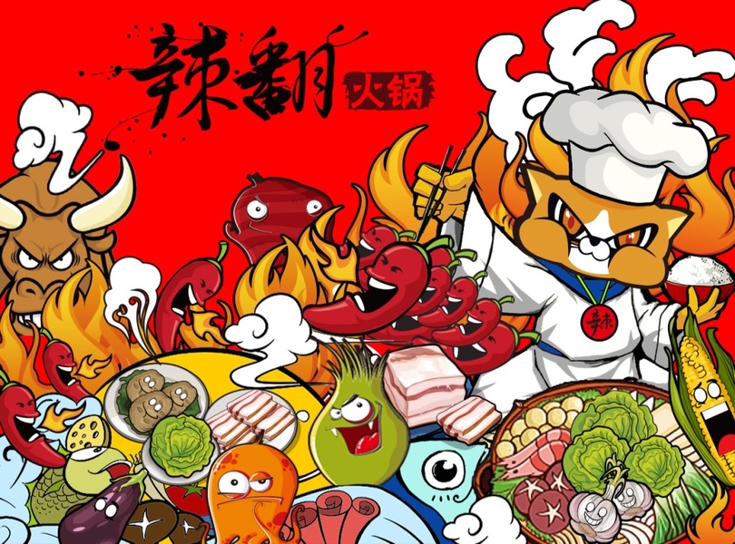 辣翻火锅 品牌吉祥物设计 墙绘设计制作 VI