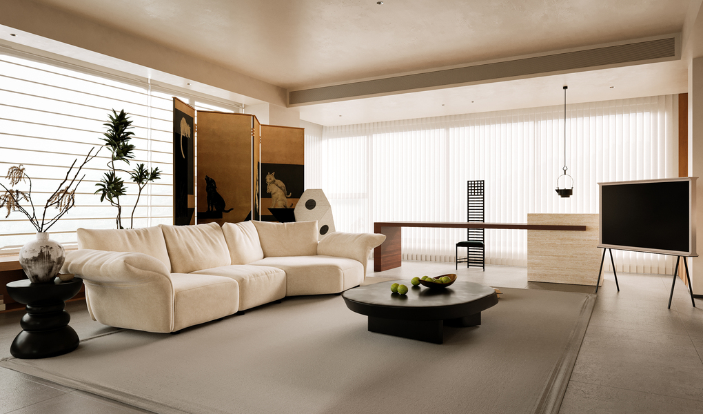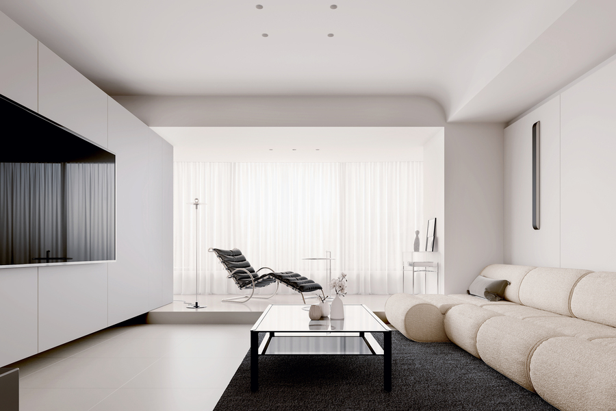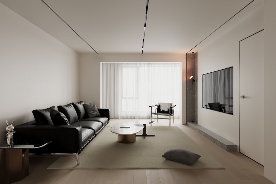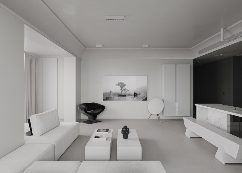 NONO空间研究室 黑白灰极简 客餐厅部分