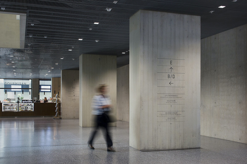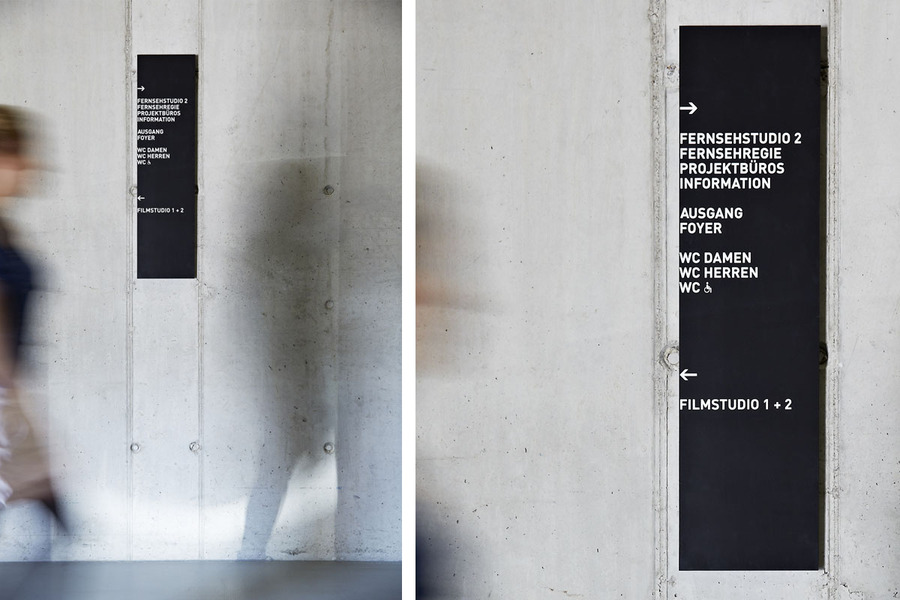 德国大学导视标识系统设计分享|混泥土配黑色系标识