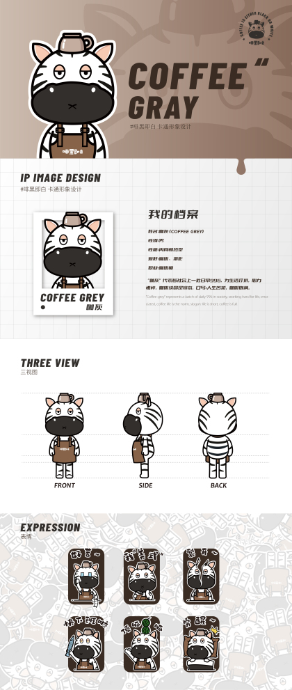 咖啡品牌IP形象设计|斑马IP-咖灰