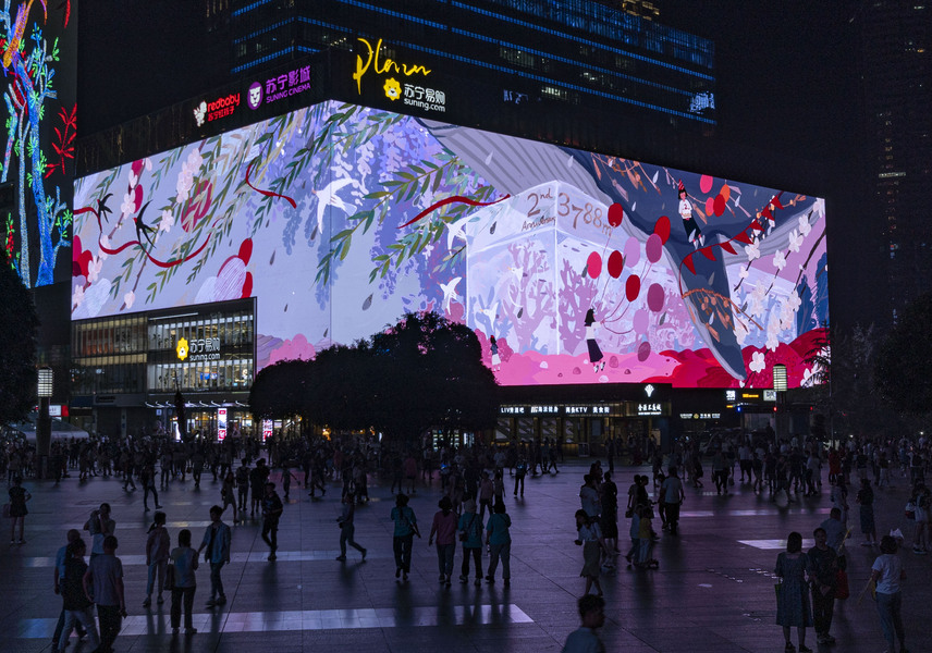 重庆观音桥 “3788亚洲之光”巨幕 两周年动态插画