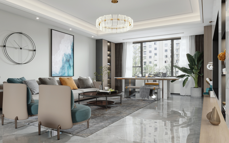 金科城幸福里装修,轻奢风格效果图,金科城洋房户型设计