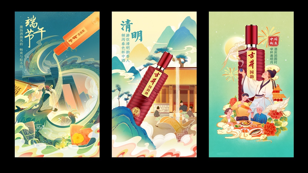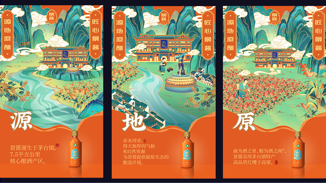 国潮插画海报设计-景酱酒庄-白酒