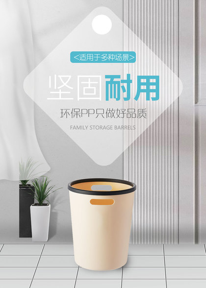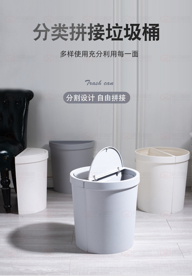 【C4D/电商类/详情页】PP圆形条纹垃圾桶