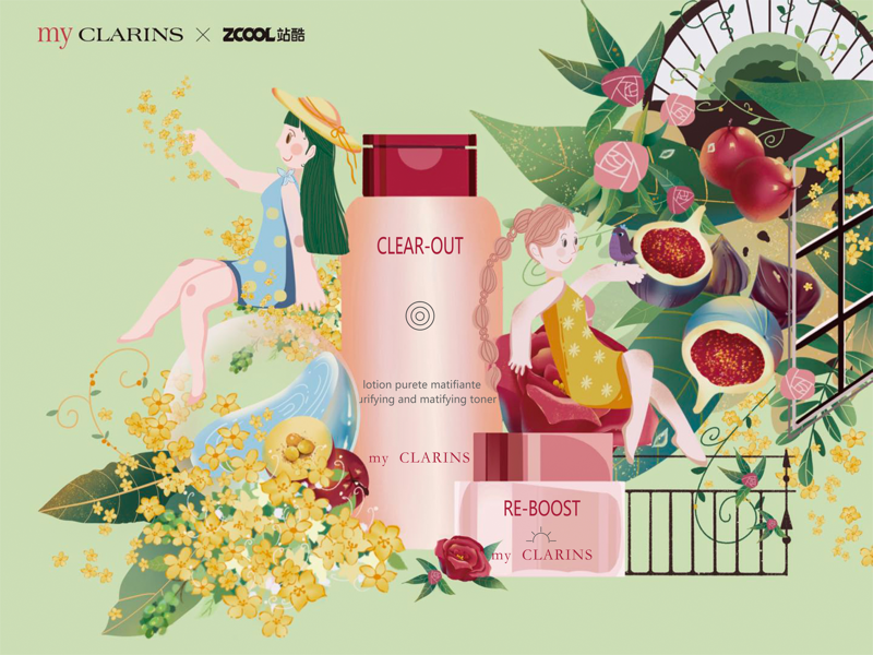 美肌植愈记·my CLARINS | 娇韵诗 化妆品插画海报设计