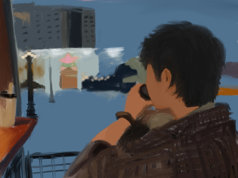 咖啡馆对面的派大星