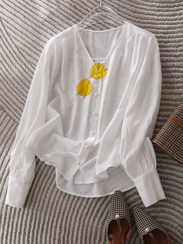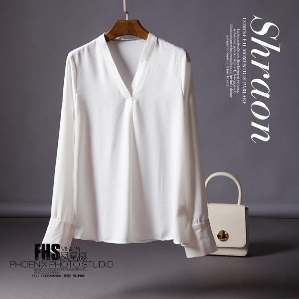 春装连衣裙 长袖衬衫 雪纺面料 平铺拍摄