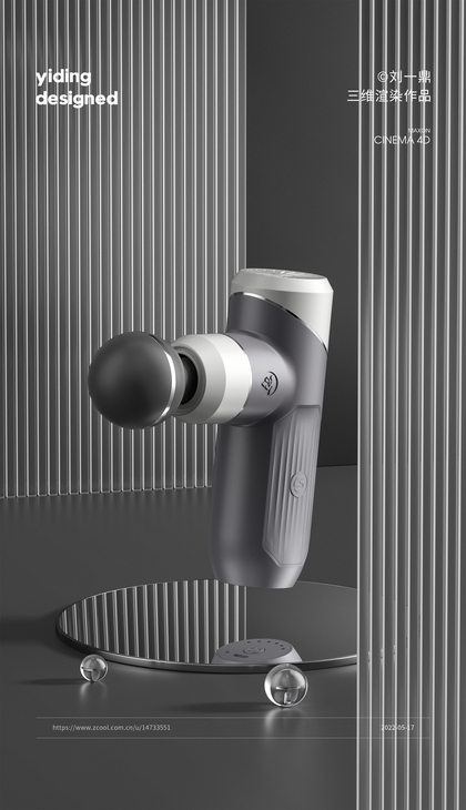 健身器材 | 可调节哑铃+筋膜枪暗色调产品表现渲染(一)