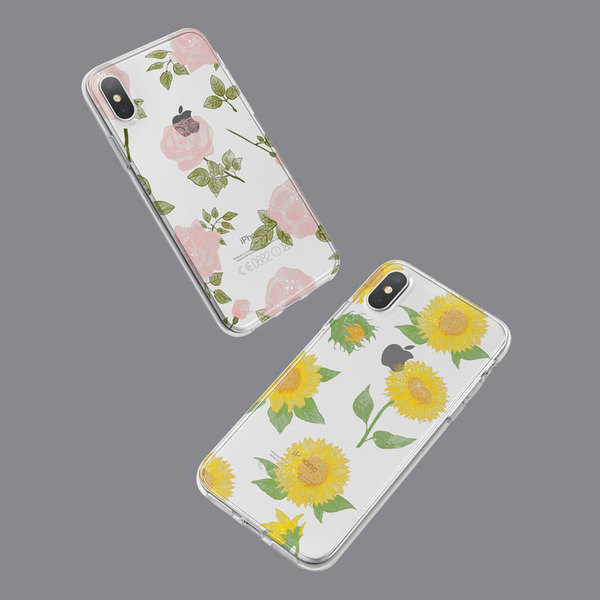 清新水彩玫瑰向日葵iPhone手机壳图案设计