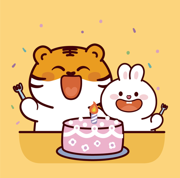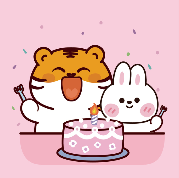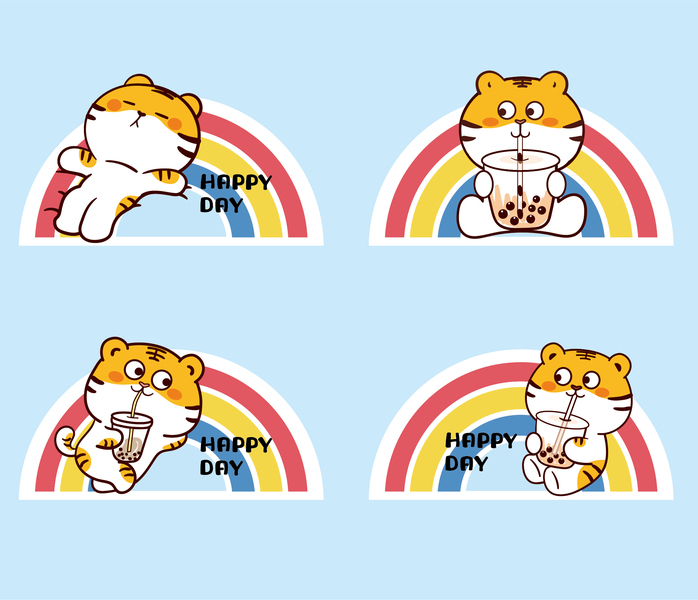 虎萌萌快乐兔IP卡通形象表情包插画头像壁纸分享