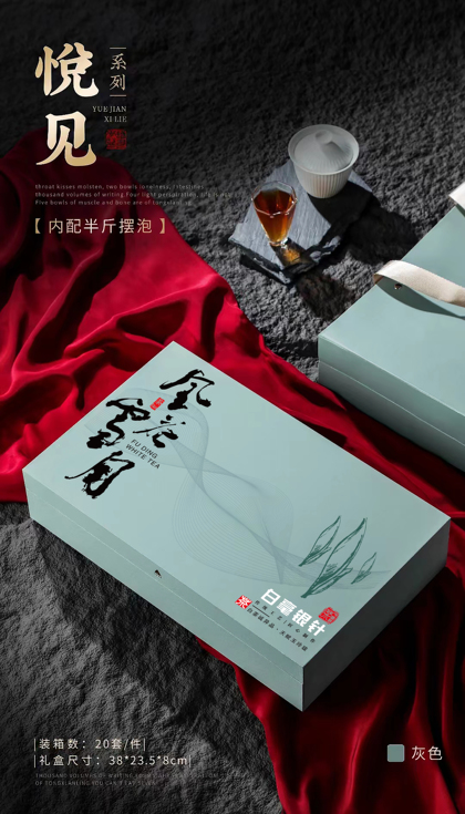 流年散茶礼盒 灰色 茶叶包装UV设计 福鼎白茶 白毫银针