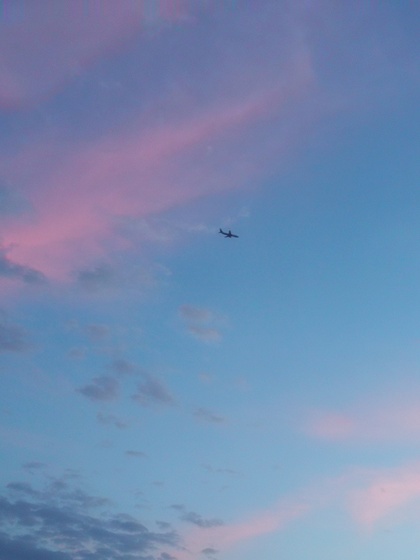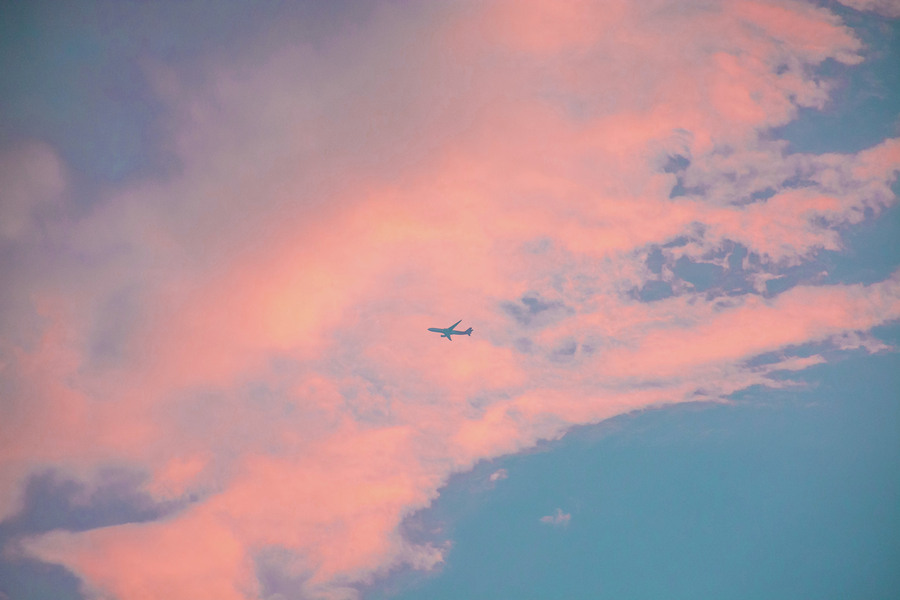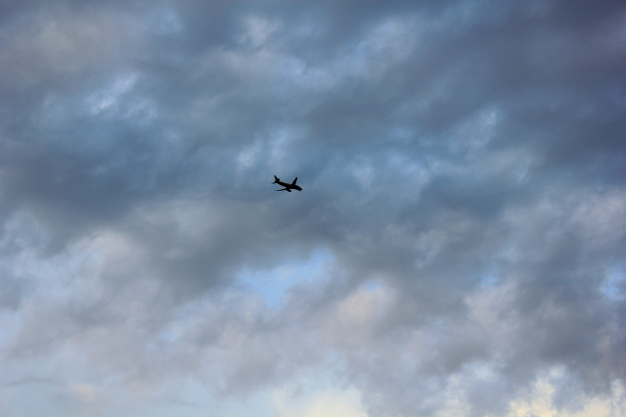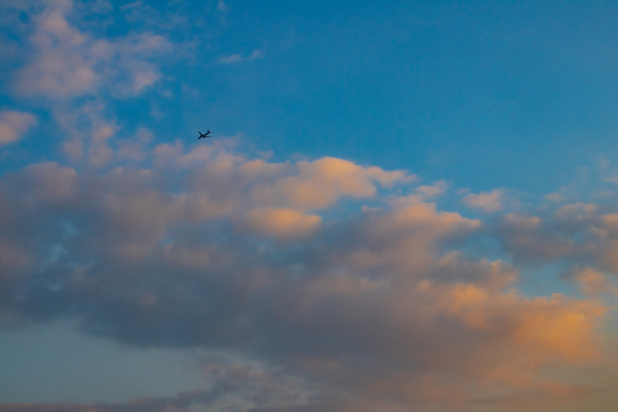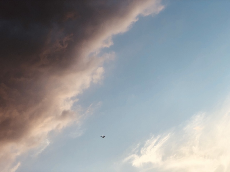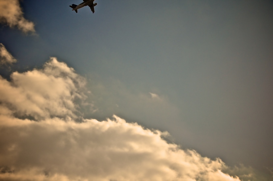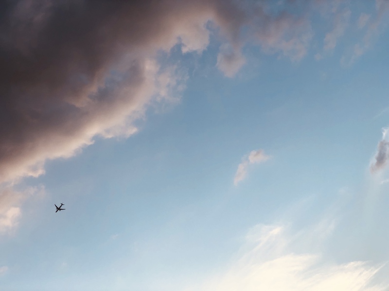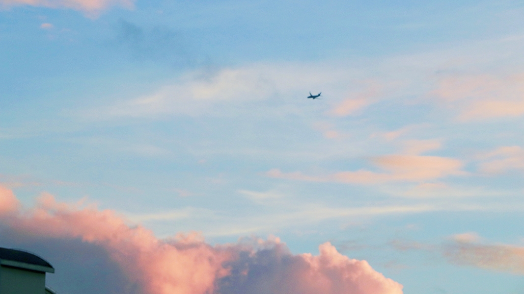头顶的飞机和云彩